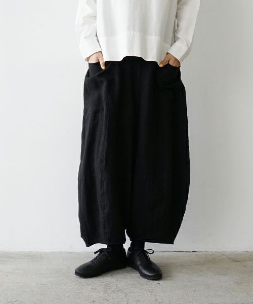 リネンの軽さとウールの暖かさが融合した、快適でスタイリッシュなサルエルパンツです。