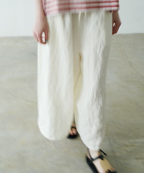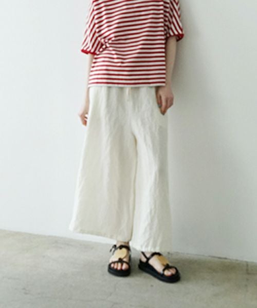 リラックス感のあるギャザーワイドパンツ。
