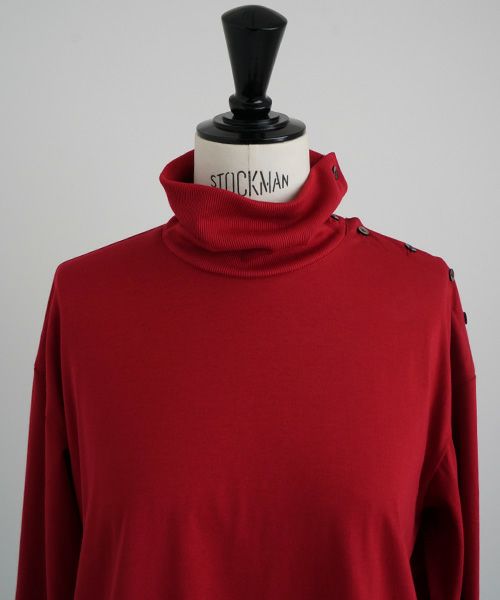 上品な光沢感のあるコットンシルク生地のタートルネックカットソー。