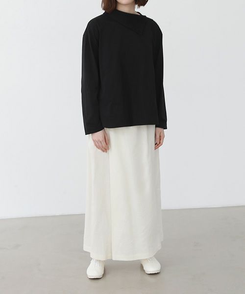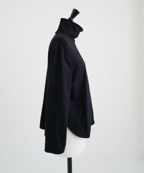 上品な光沢感のあるコットンシルク生地のタートルネックカットソー。