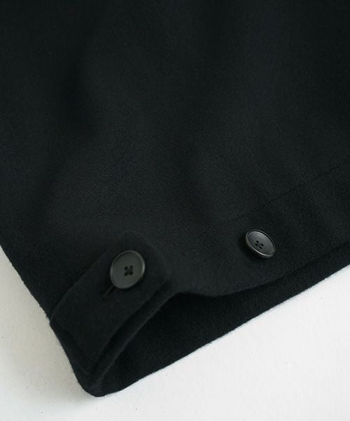 後ろ身裾の両サイドに裾巾を少し調整できる仕様になっています。1つボタンを留めるとシルエットが変えて楽しめます。
