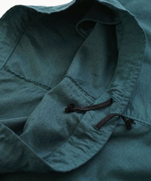 COTTON 79% LINEN 21% 丁寧な揉みこむことで洗いざらしのしわ感を表現し、独特な膨らみ感と反撥感に塩縮風合いをプラスした高品質なコットンリネン生地。