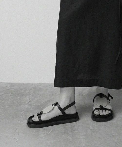 plywood(プライウッド)で制作したオリジナルモチーフを取り付けたボリュームサンダルです。