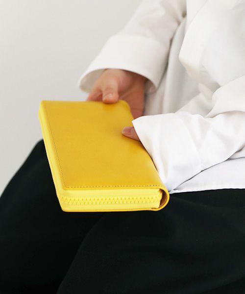 キップレザーのジャンボウォレット。しっとりとした質感と、色の鮮やかさが魅力のキメの細かいキップ(子牛)の革を使用しています。