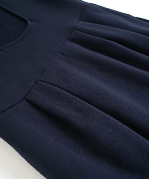 大きく開いたスクエアネックが首元から胸元を広く見せるため、