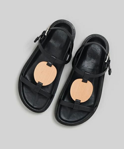 plywood(プライウッド)で制作したオリジナルモチーフを取り付けたボリュームサンダルです。
