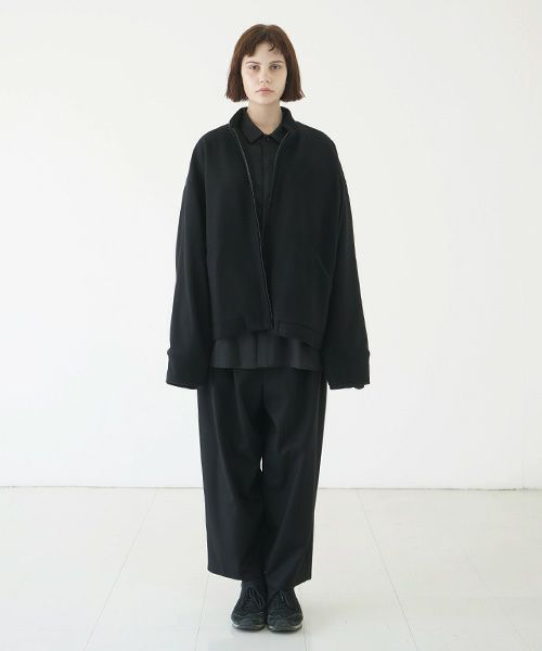 ミニマムなディテール、程よい丈感のゆったりシルエットでサッと羽織れて、ワイドな袖とスタンドカラーが特徴のブルゾン。