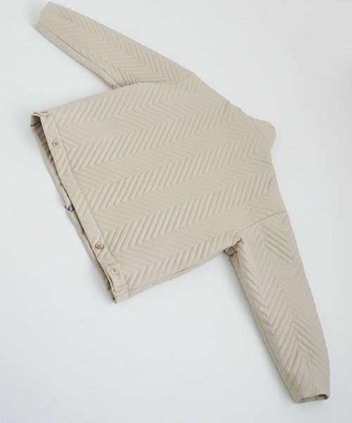 ウール生地に大きなジグザグ刺繍をした中綿生地で作ったスタンドカラーブルゾン。