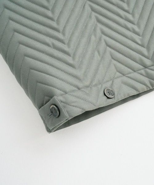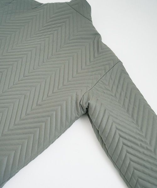 ウール生地に大きなジグザグ刺繍をした中綿生地で作ったスタンドカラーブルゾン。ミニマムなディテール、程よい丈感のゆったりシルエット。