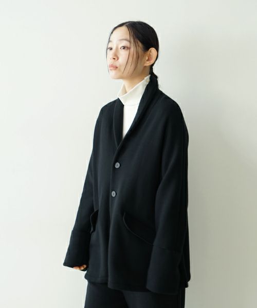 角がなく、丸みを帯びたスムーズな曲線のショールカラー。