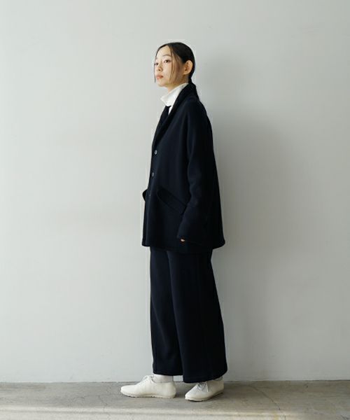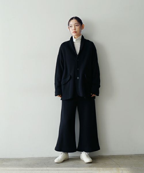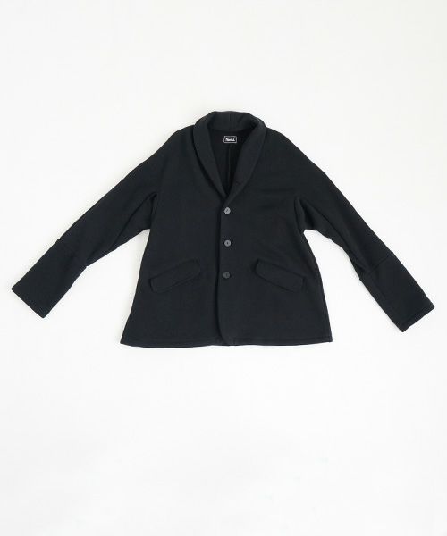 シンプルな3つボタン仕様のスエット素材のジャケット。