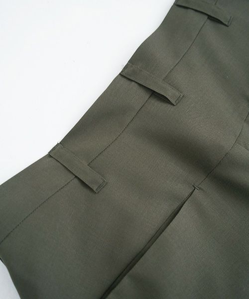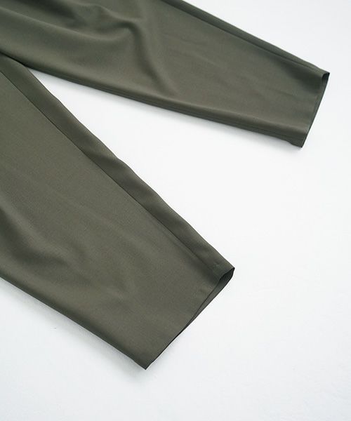 高級ウオッシャブルウールで作ったキレイな程よい光沢と落ち感のあるワイドシルエットのテーパードパンツ。