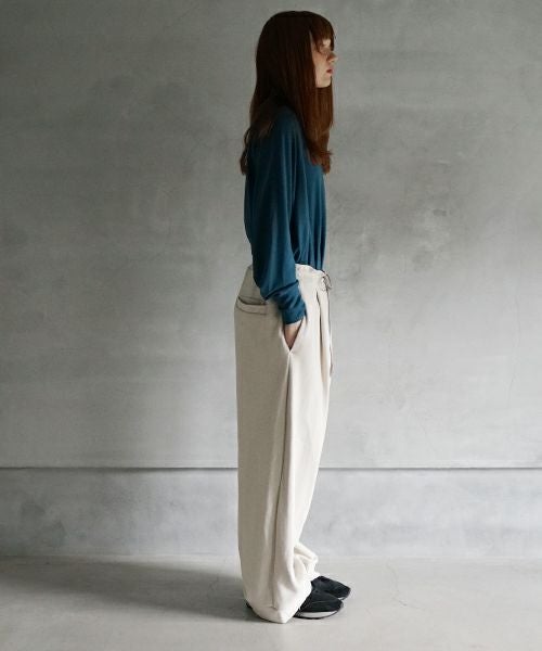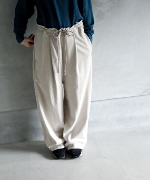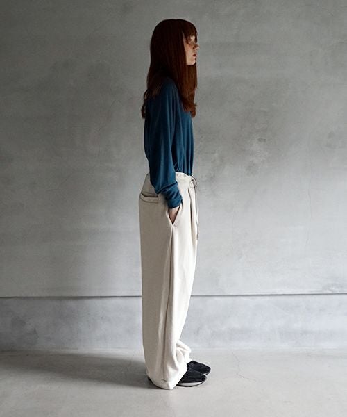 前には深めのタックデザインを入れることで、立体感のあるシルエットを実現しました。