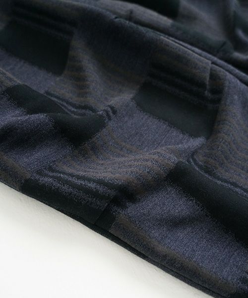 コットンとウールの糸でオリジナルチェック柄のジャガード生地を日本の産地兵庫県西脇市の機織り工場で作りました。完全オリジナルデザインのチェック柄です。コットンとウールをミックスで織り上げたあと、仕上げを加工でウールとコットンが混ざっていることによって、凹凸のある表面感豊かな生地に仕上がっています。