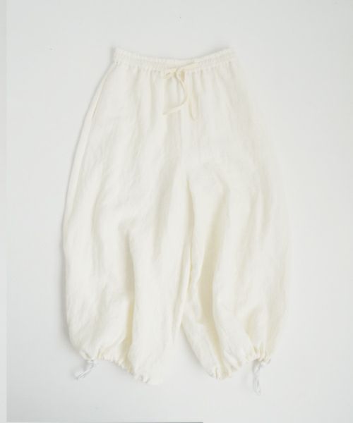 | サイズ | ウエスト(紐&ゴム仕様) | 股上 | 股下 | ヒップ | ワタリ周り | 裾周り | size1 | 66~100cm | 34cm | 49cm | 114cm | 80cm | ~89cm | size2 | 70~104cm | 36cm | 52cm | 120cm | 84.5cm | ~94cm |