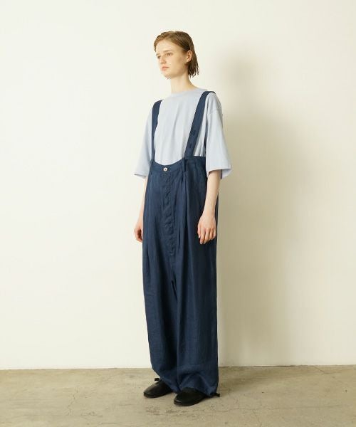 ワイドシルエットが特徴のサロペット(オーバーパンツ)です。1950~60年代の防寒・防風用カバーパンツをベースにデザインしました。肩紐で吊って着るだけでなく、ウエストで調整してパンツとしても着用可能。裾の紐を絞れば、丈の調整やバルーンパンツ風のシルエットも楽しめます。