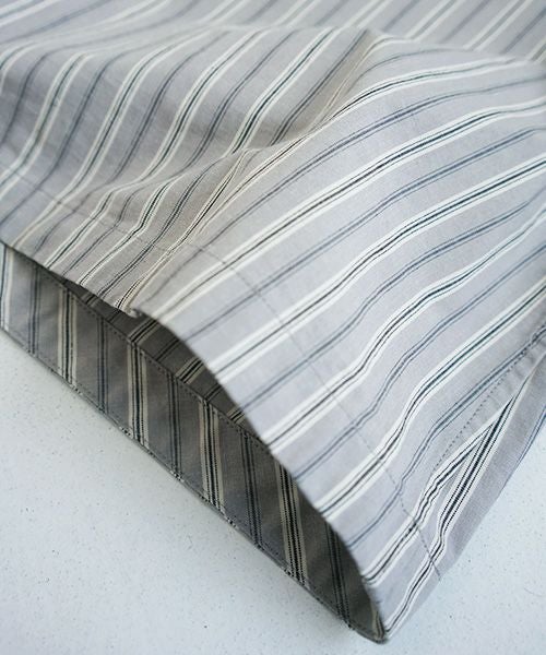 一見シンプルなデザインながらお召しいただくとパターンの良さが光るチュニックです。生地はjapan madeにこだわった張りのある縞柄です。ゆったりとしていながらも、すっきりとした衿ぐりとキレイに広がるシルエットです。袖口をロールアップして着ていただくのもおすすめです〇