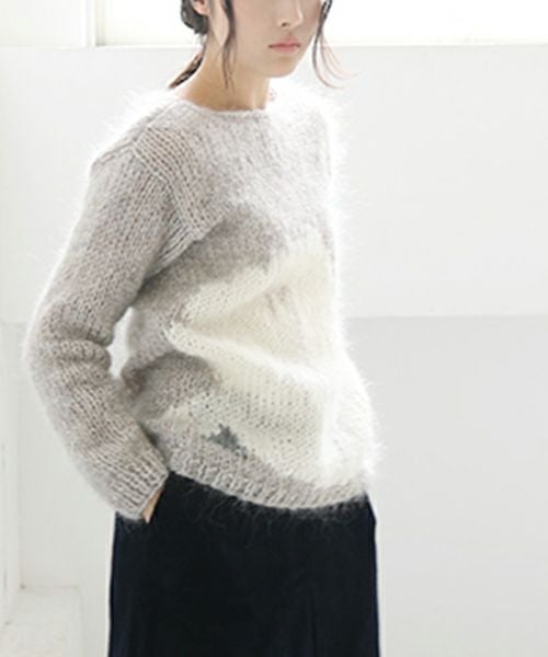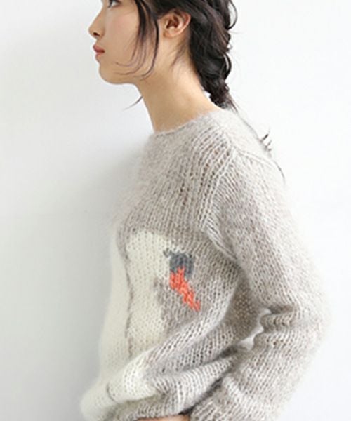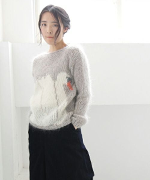 Maiamiらしいスワンをモチーフのセーター。 北ドイツで紡がれた毛糸を使用し、全てのニットは ベルリン、ブランデンブルグ、ポーランド でニッター(編み物専門の職人)によって作られています。 インポートならではの配色とほわほわした毛足が長く 太目のMohairが目を引くこと間違いなしです。