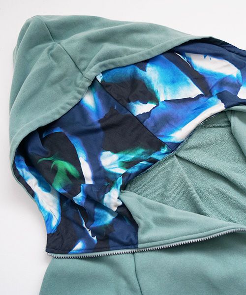 フードに生地切り替えで特徴的な柄を採用。裏返してもオススメ。