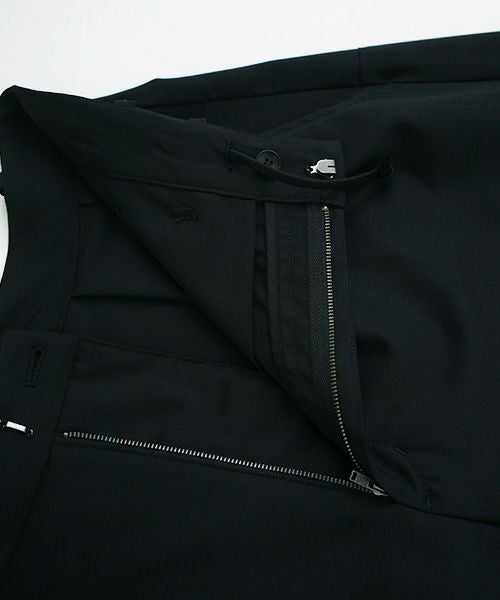 サイドの裾にボックスプリーツをとることによって、着用時に独特の揺れ感が生まれます。