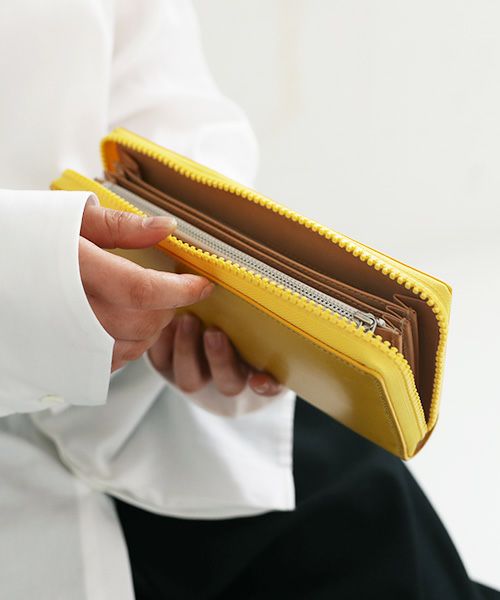 キップレザーのジャンボウォレット。しっとりとした質感と、色の鮮やかさが魅力のキメの細かいキップ(子牛)の革を使用しています。
