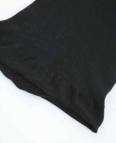 ハイネックのハイゲージ無縫製リブニットです。袖はラグランスリーブ。スリット糸を混ぜて編んでいる伸縮性にすぐれ、着心地の良い柔らかな仕上がりになっています。
