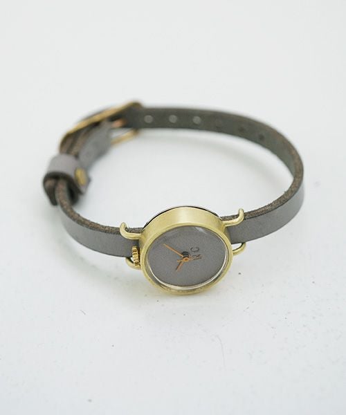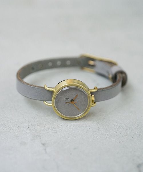 バンドと文字盤・針を同色にしており、また竜頭の位置も通常の3時の位置ではなく、12時の位置にする事で非常にクリーンな表情をしています。 制作自体は1点1点ハンドクラフトにて制作しているため、クリーンな表情の中にもどこか懐古的な匂いが混在する不思議な世界観の時計です。