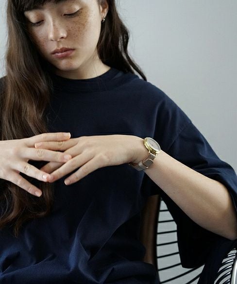 なぜ衣服のように時計にはサイズがないのか。 腕そして体格、ひとりひとり同じではありません。 その疑問から生まれたコレクションです。 バンドと文字盤・針を同色にしており、また竜頭の位置も通常の3時の位置ではなく、12時の位置にする事で非常にクリーンな表情をしています。 制作自体は1点1点ハンドクラフトにて制作しているため、クリーンな表情の中にもどこか懐古的な匂いが混在する不思議な世界観の時計です。? 【素材】
