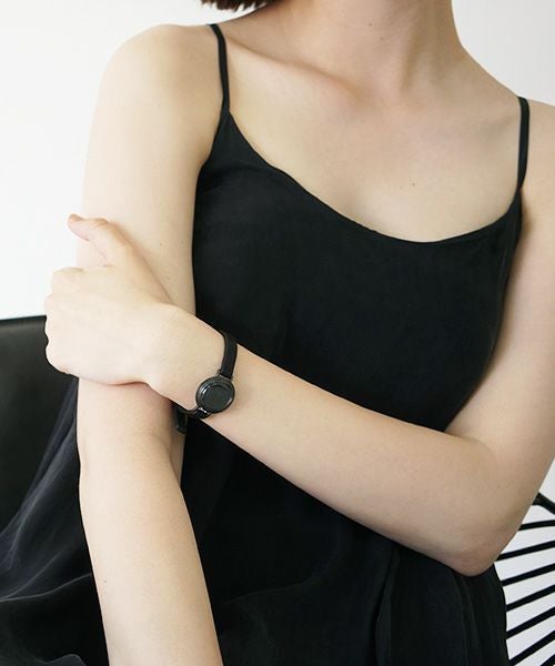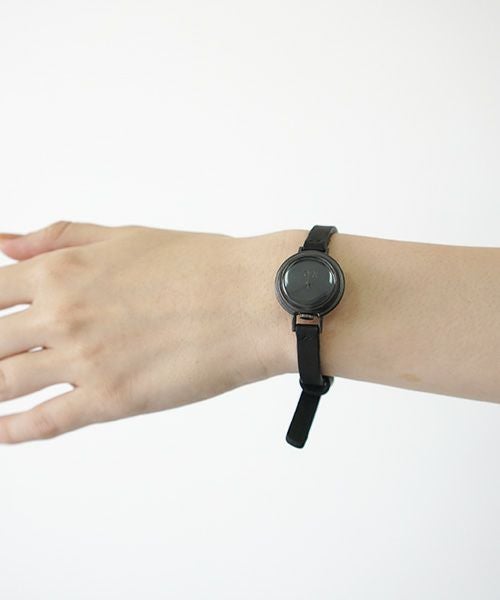 バンドと文字盤・針を同色にしており、また竜頭の位置も通常の3時の位置ではなく、12時の位置にする事で非常にクリーンな表情をしています。 制作自体は1点1点ハンドクラフトにて制作しているため、クリーンな表情の中にもどこか懐古的な匂いが混在する不思議な世界観の時計です。