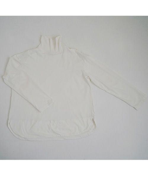 上品な光沢感のあるコットンシルク生地のタートルネックカットソー。