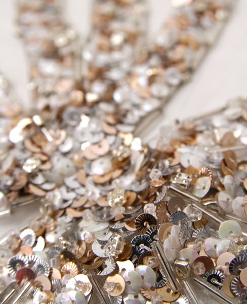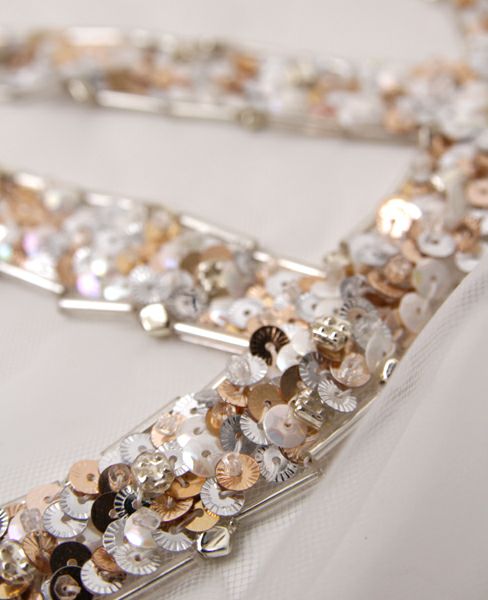 上質なシルクシフォンにリボンモチーフのアンティークビーズの刺繍が入った豪華な3mヴェール。 シンプルなドレスとのコーディネートに、ぜひ、おすすめしたいヴェールです。