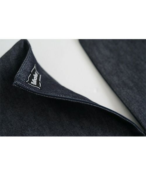 岡山産の最高級のシルクコットンデニム生地。クセの強すぎない高級感漂う生地表情。