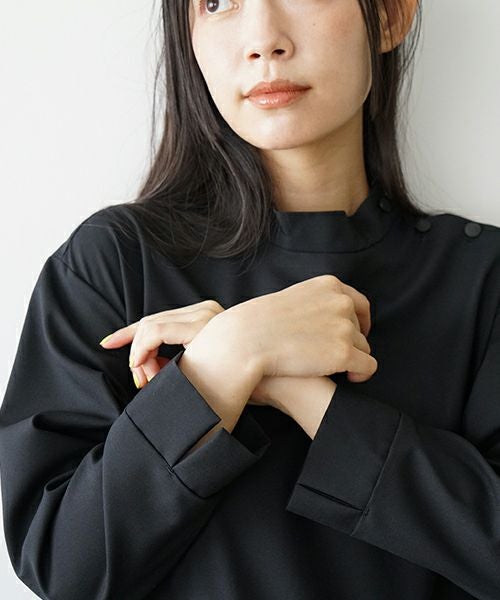 襟元は首元に少し沿うようなプチハイネックに。