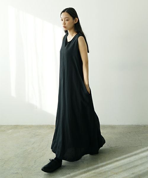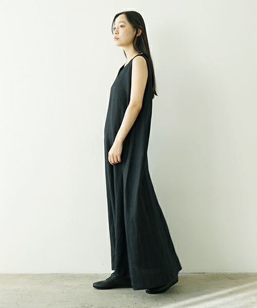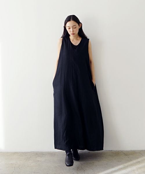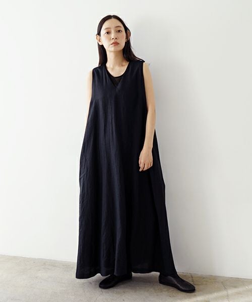 Mochi モチ linen v-neck dress [black] フレンチリネンVネックドレス