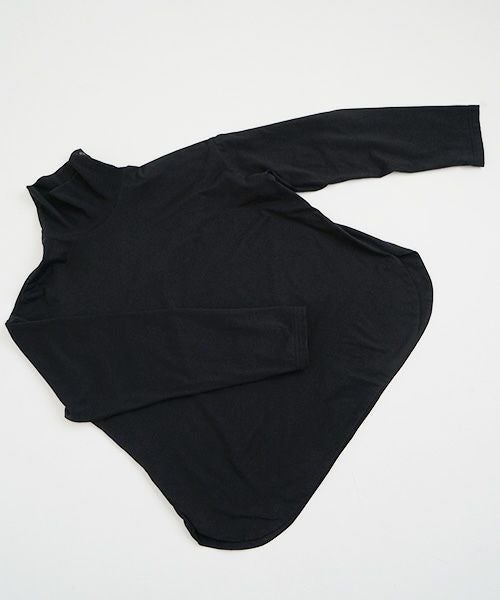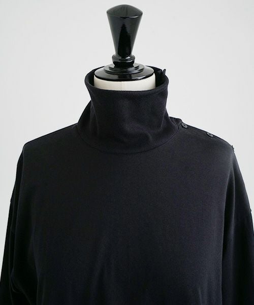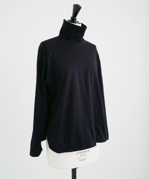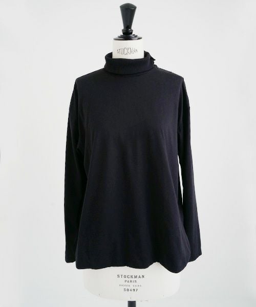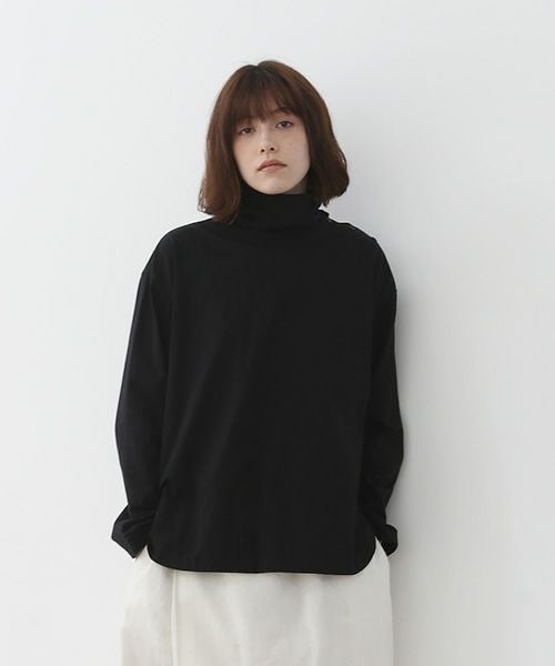 上品な光沢感のあるコットンシルク生地のタートルネックカットソー。