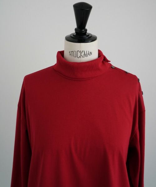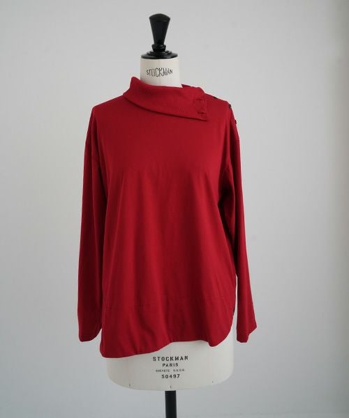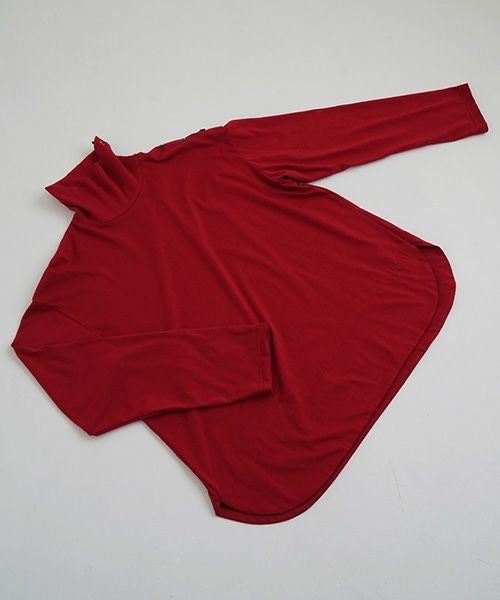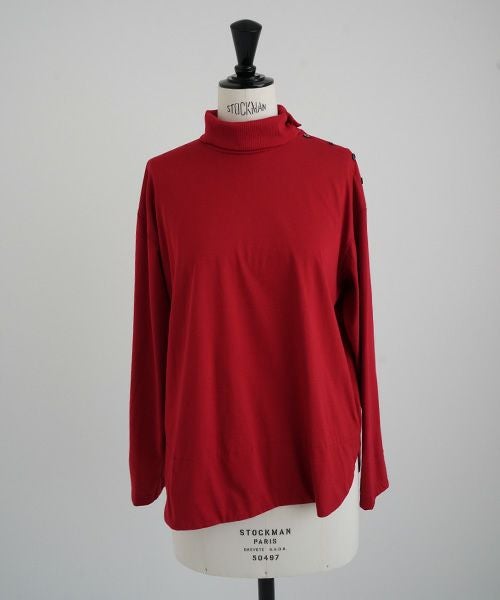 上品な光沢感のあるコットンシルク生地のタートルネックカットソー。