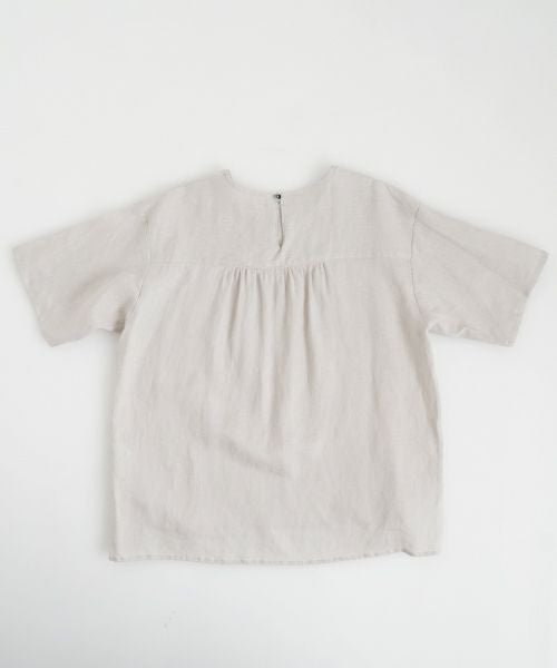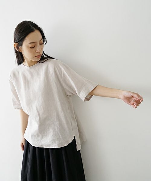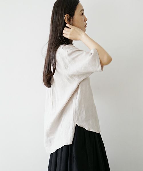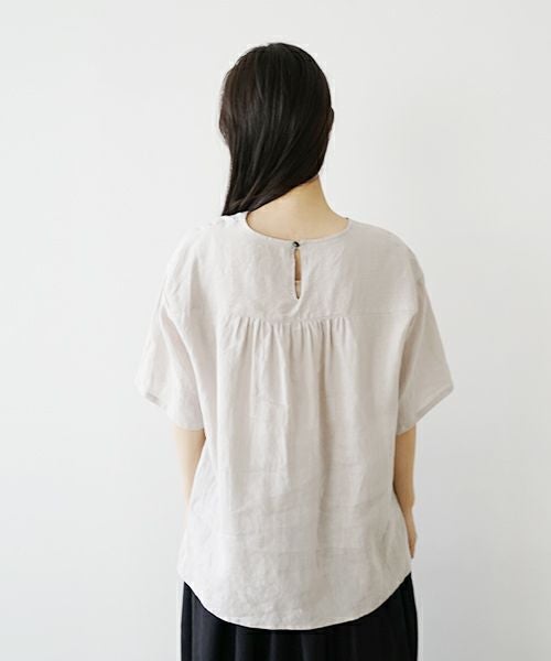 フレンチリネン素材を使用したプルオーバーブラウス。