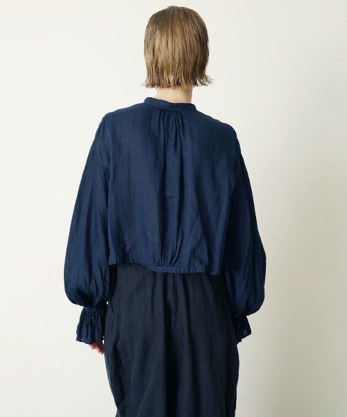 上品なシルエットが魅力のビショップスリーブボレロ。上質なリネンの軽やかな素材感。