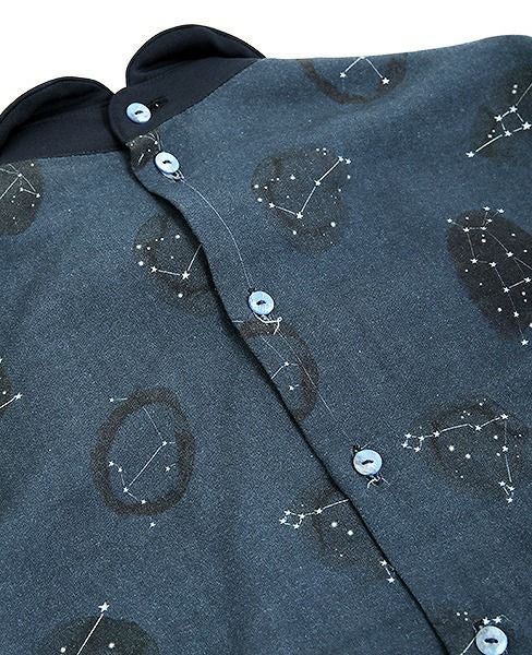 星座の柄をモチーフにしたアイテム。襟元のクロスに畳んだタックが印象的なアイテムで、シンプルな羽織を着た時にでも華やかさが増すブラウスです。