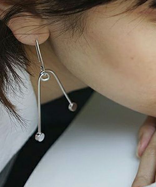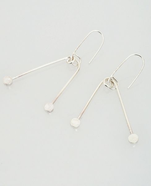 振り子の様なデザインが特徴的なピアス。STERLING SILVERを使用。スターリングシルバー (sterling silver)とは 銀を92.5パーセント(925パーミル)含む合金のこと。 その純度からシルバー925などとも呼ばれ、 宝飾品や食器などに広く利用されている。
