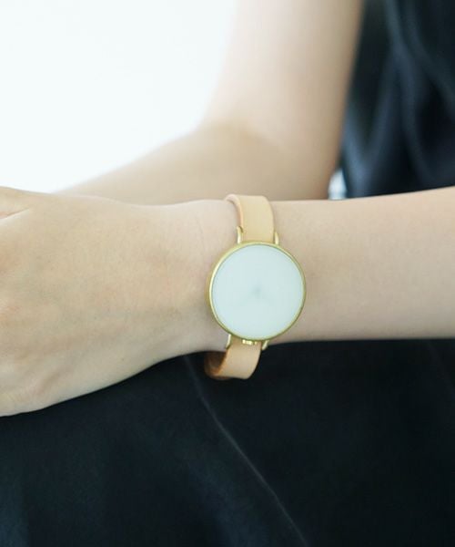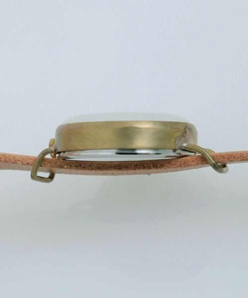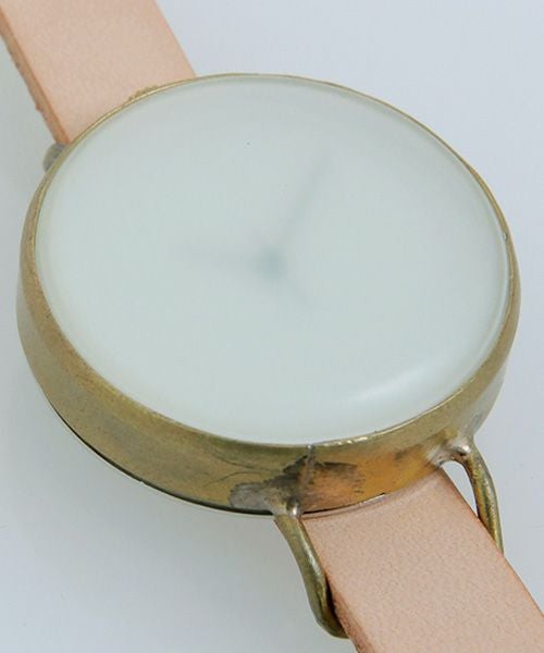 ガラスレンズは、非常に細かい番手のヤスリで削り上げ、曇りガラスの表情に。 ぼんやり浮かび上がる黒の針は、長短のバランスを明確に分けた、デザイン針を採用。 また、文字盤には蓄光を採用しております。 日中の光を吸収し蓄えることで、夜間ぼんやりひかる、時計ブランドでもあまり見ないデザインを採用しています。