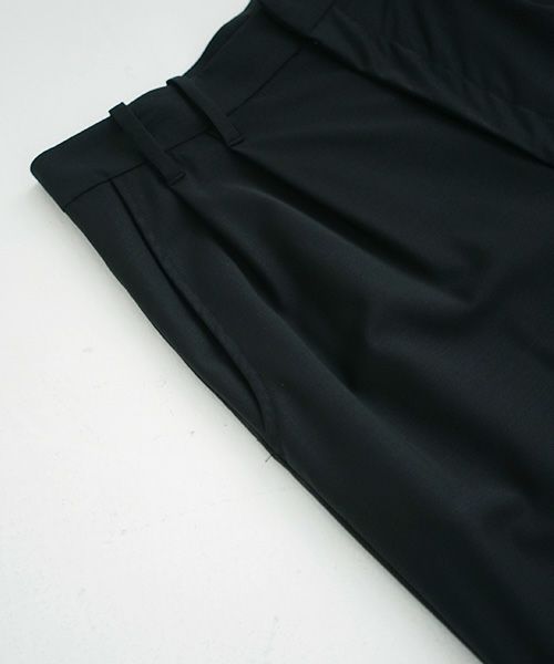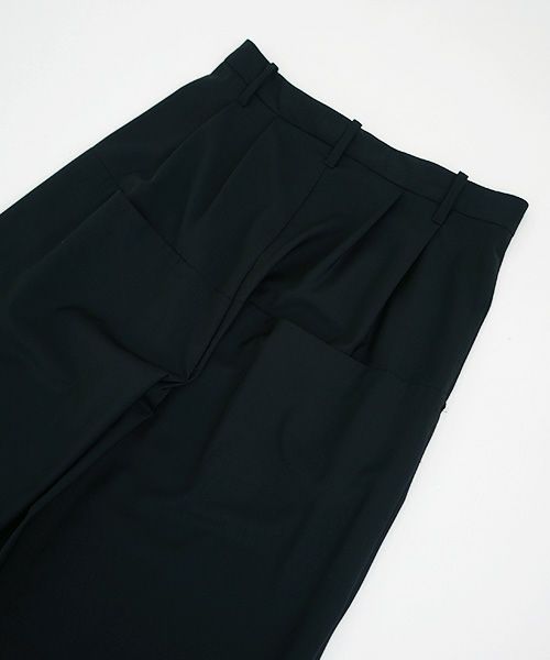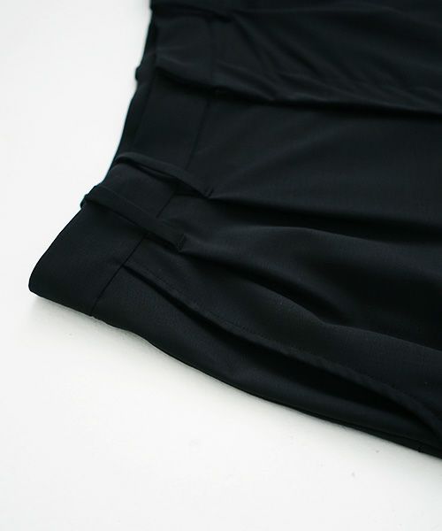 サイドの裾にボックスプリーツをとることによって、着用時に独特の揺れ感が生まれます。