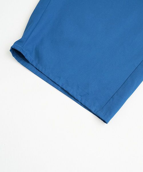 今期は光沢の高級感溢れるスーピマコットン素材を使用。 程よい柔らかいハリ感、軽さ中に丈夫さを用いた特徴的な1枚。 「bluson coat/vuy-s22-b01」「short jacket/vuy-s22-j01」と同素材使いでセットアップ合わせで コーディネートをお楽しみいただけます。