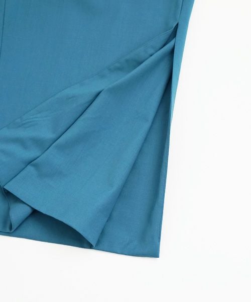 サイドの裾にボックスプリーツをとることによって、着用時に独特の揺れ感が生まれます。