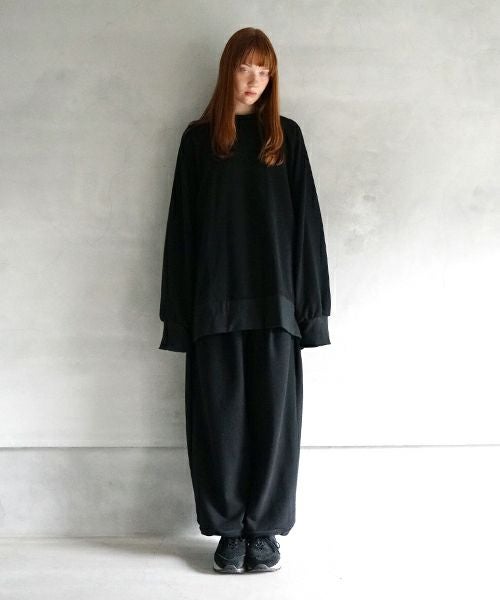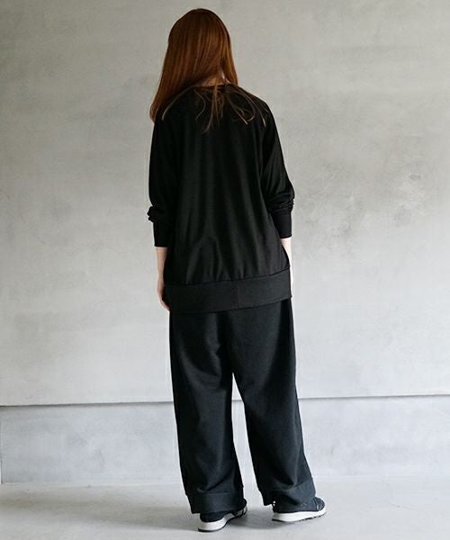 ウエスト、裾にはリブ編み生地を使用し、程よいフィット感とアクセントをプラスしています。