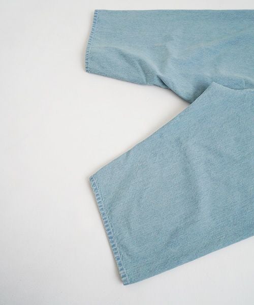 ブルーデニム生地にブリーチ加工を施して淡い色合いで春らしい一枚に仕上げました。