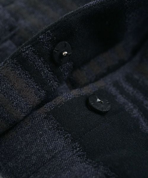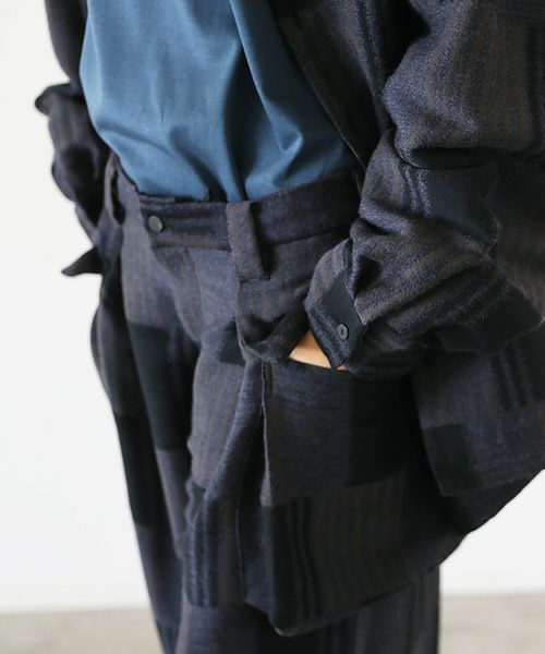 最高峰のコットンブランド「フィンクスコットン」/ オリジナルコットンウールチェック生地で作った、膝を広くしたシルエットが特徴のニーワイドパンツ。