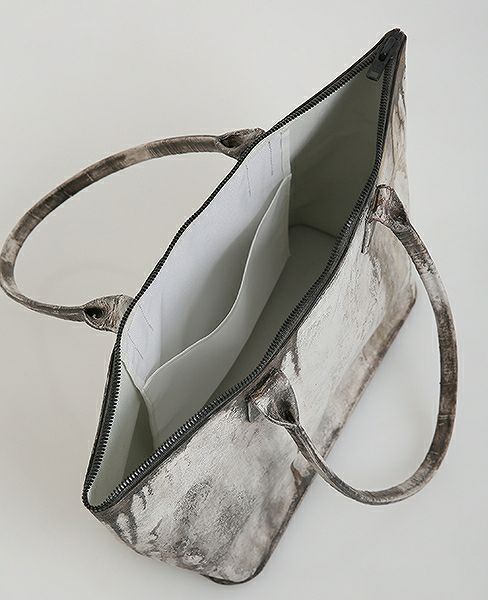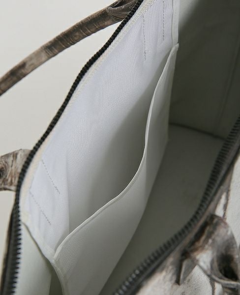 ジップ付きのトートバッグ。マチが大きめに取り、容量を確保しています。