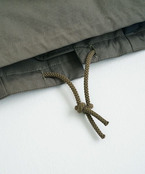 裾の紐で絞ることも可能であり、縦付けの内ポケットにはクルミスナップボタンが付いています。