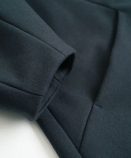 super 120's(17.5マイクロン)の上質なウール100%原料を使用する事により、滑らかさと光沢感の感じられる仕上がりの生地です。 入念に縮絨工程を行ってから押さえ工程を掛けることによりしっかりとしたコシがあり、毛羽立ちの起きにくいメルトン仕上げになっています。 尾州老舗ウール生地工場でオリジナルで作ってもらった最高の素材です。